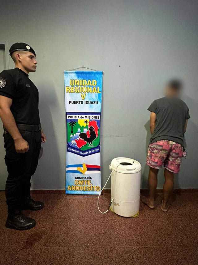 AGENCIA MISIONES.UNO | Efectivos policiales detuvieron nuevamente a un joven de 27 años en el barrio Quintas Bajas de Andresito, luego de ser sorprendido trasladando un secarropas que había sido denunciado como sustraído horas antes.