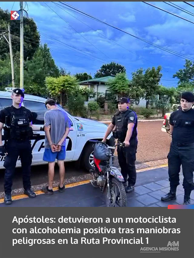 La entrada Apóstoles: detuvieron a un motociclista con alcoholemia positiva tras maniobras peligrosas en la Ruta Provincial 1 se publicó primero en Agencia Misiones.uno.