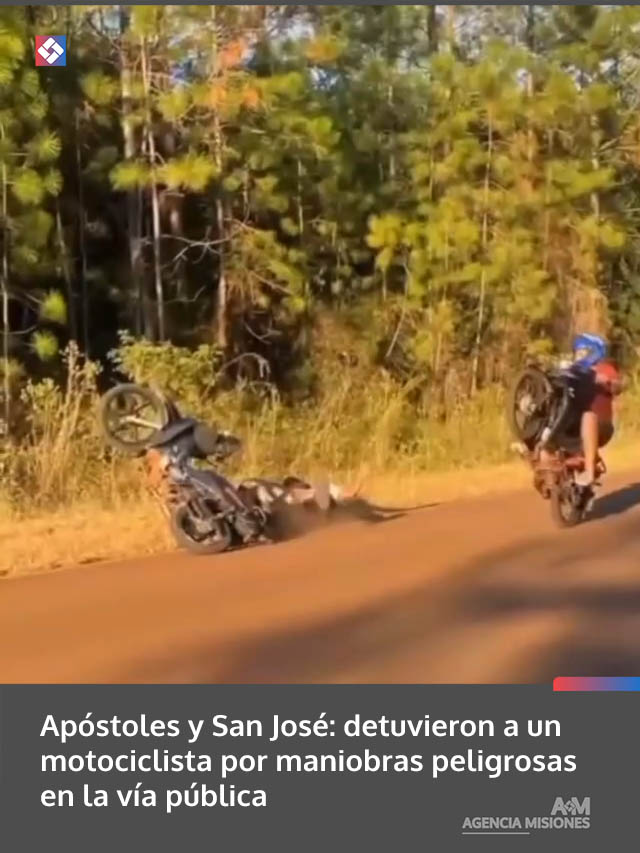 El procedimiento se inició luego de que efectivos policiales tomaran conocimiento de filmaciones en las que se veía a un masculino efectuando maniobras peligrosas, como wheelies y contraexplosiones, a bordo de una motocicleta sobre la ex Ruta Nacional 14, en la localidad de San José, y por avenida Sarmiento, en jurisdicción de Apóstoles, poniendo en riesgo su integridad y la de terceros.