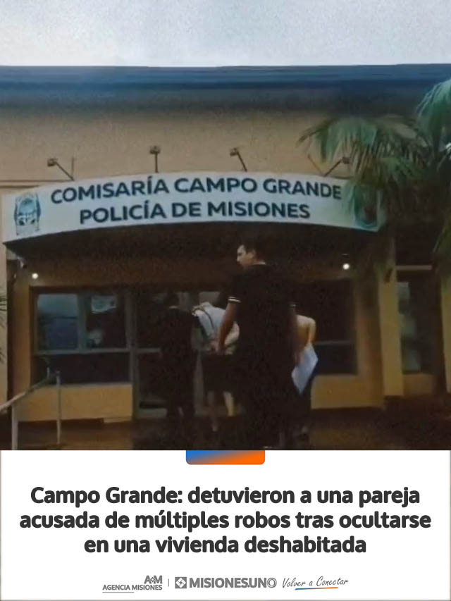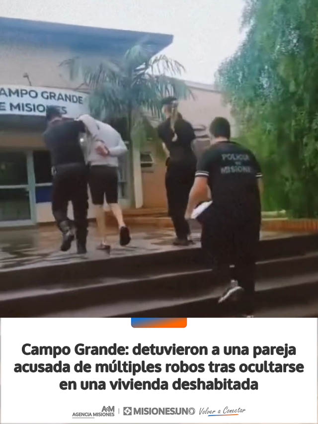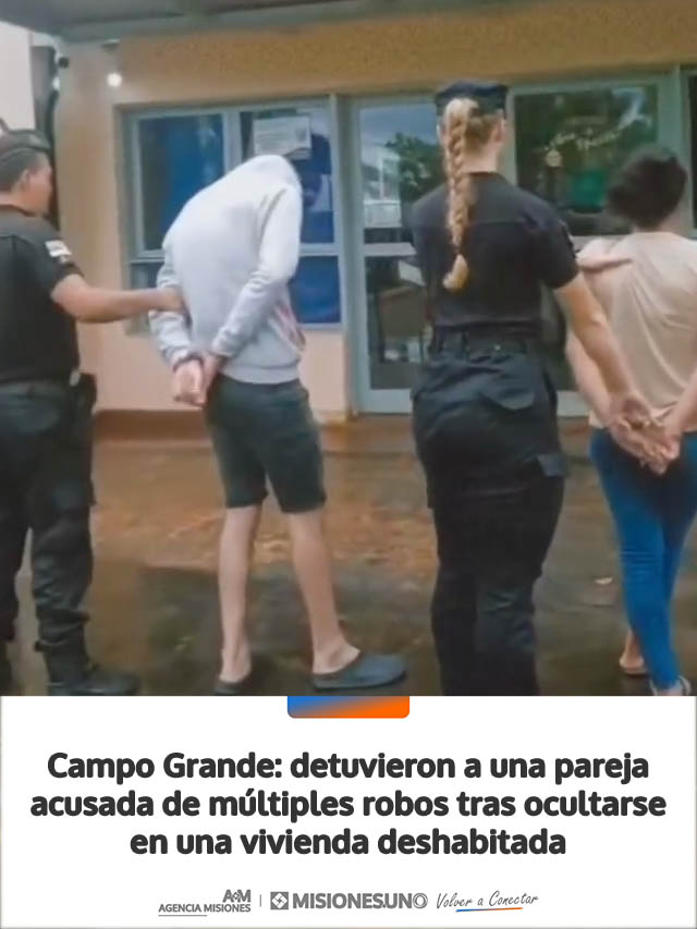 AGENCIA MISIONES.UNO | Un hombre de 26 años y una mujer de 20 fueron detenidos en Campo Grande, luego de ser investigados por distintos delitos contra la propiedad en la zona. Ambos se encontraban ocultos en una vivienda deshabitada.