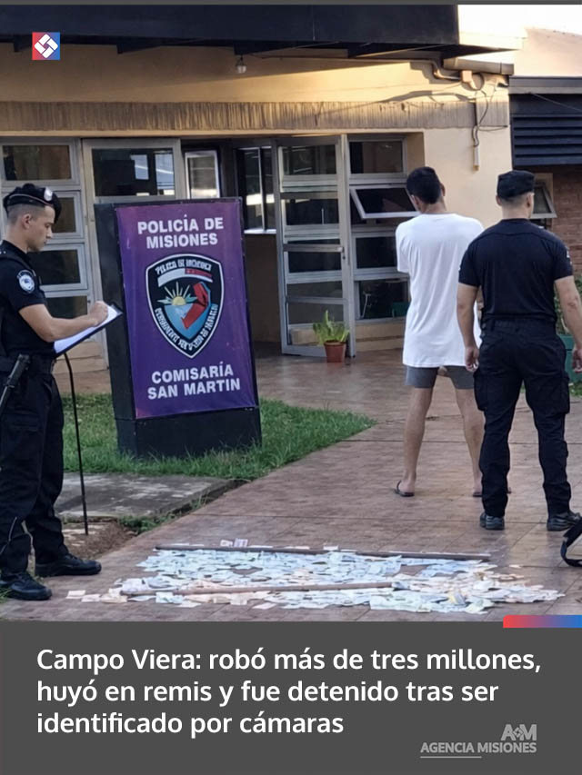 El procedimiento fue llevado adelante por efectivos de la Comisaría de Campo Viera, dependiente de la Unidad Regional II, en conjunto con otras dependencias. La investigación se inició tras la denuncia de un comerciante de 32 años, quien manifestó que, luego de forzar una reja de acceso a su local, el autor sustrajo alrededor de tres millones de pesos en efectivo, mercaderías y un teléfono celular.