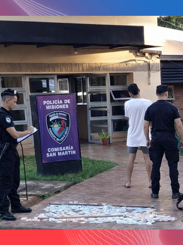 Con los datos recabados, se estableció que el implicado, identificado como Facundo D. O. (29), se trasladaba en remis hacia Oberá y posteriormente en otro vehículo en dirección a Santa Ana por la Ruta Provincial 103. Finalmente fue interceptado y detenido. En su poder secuestraron una mochila con más de dos millones de pesos en efectivo, un teléfono celular y otros elementos denunciados como sustraídos. El conductor del remis fue demorado a los fines de cumplimentar las diligencias correspondientes.