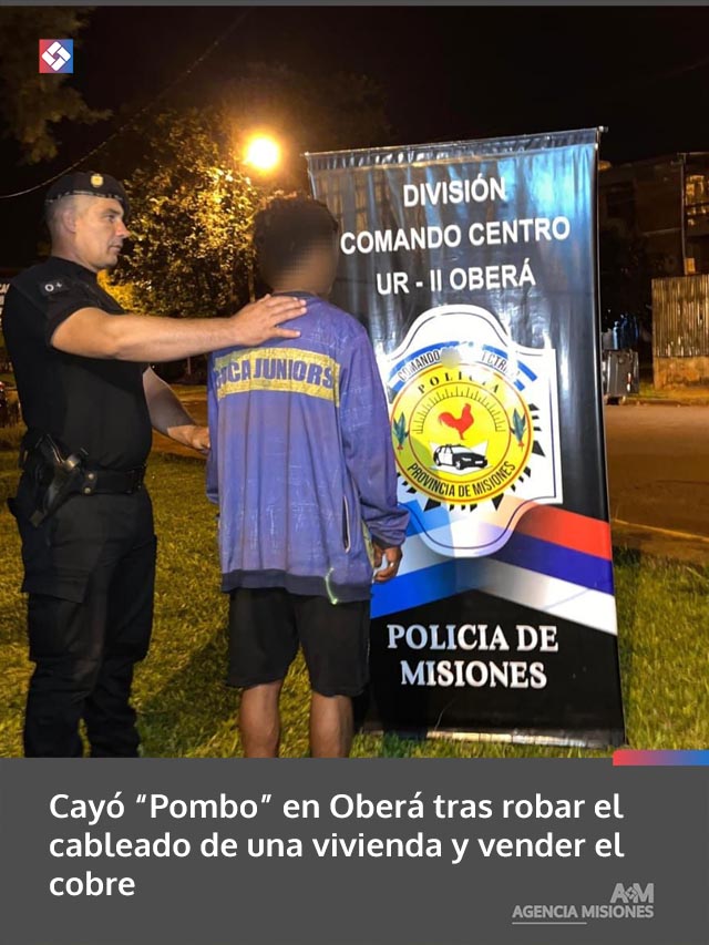 La entrada Cayó “Pombo” en Oberá tras robar el cableado de una vivienda y vender el cobre se publicó primero en Agencia Misiones.uno.