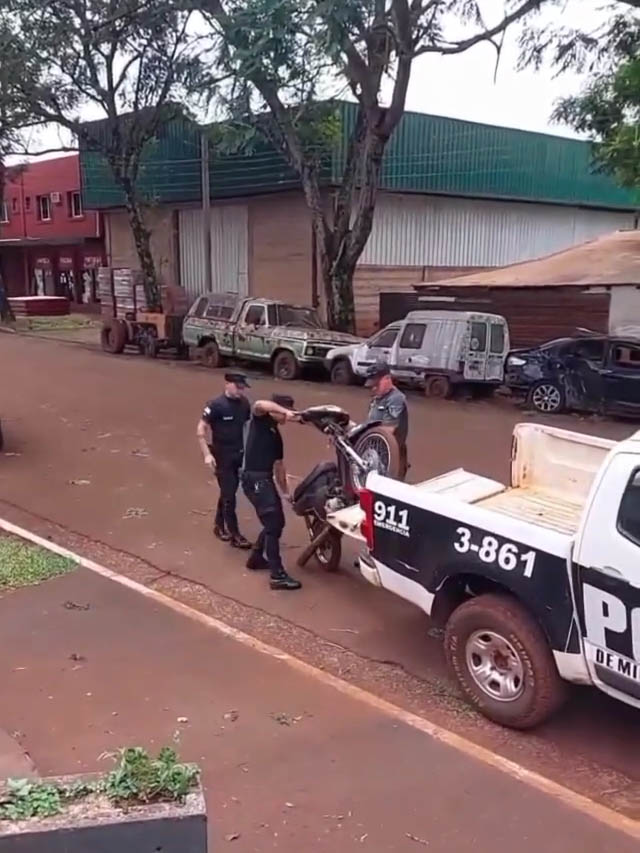 El procedimiento fue llevado adelante por efectivos de la Comisaría local, dependiente de la Unidad Regional VII, luego de tareas investigativas vinculadas a un motociclista que circulaba de manera temeraria, realizando “wheelies” y alterando el orden público en distintos sectores de la localidad.