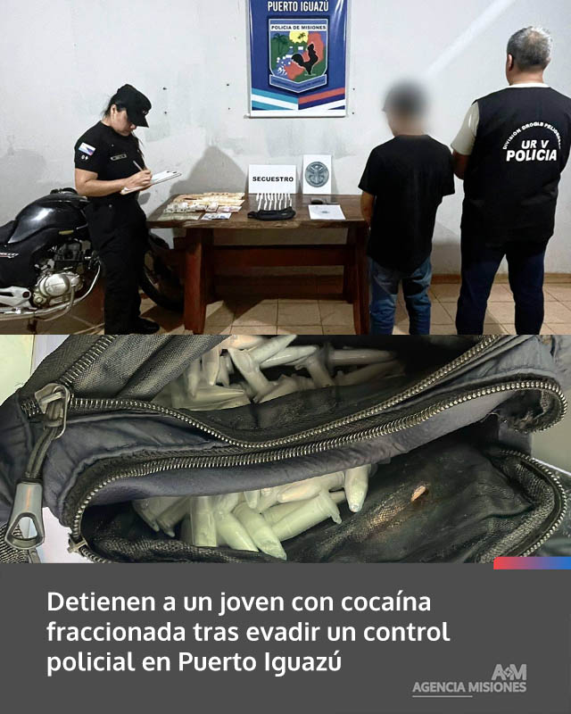 AGENCIA MISIONES.UNO | Un joven de 19 años fue demorado en Puerto Iguazú luego de intentar escapar de un control policial y ser interceptado mientras transportaba cocaína fraccionada, presuntamente destinada a su distribución.