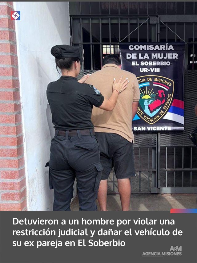 AGENCIA MISIONES.UNO | Un hombre de 34 años fue demorado en la localidad de El Soberbio acusado de incumplir una prohibición de acercamiento vigente y provocar daños en el automóvil de su ex pareja, según denunciaron ante la Policía de Misiones.
