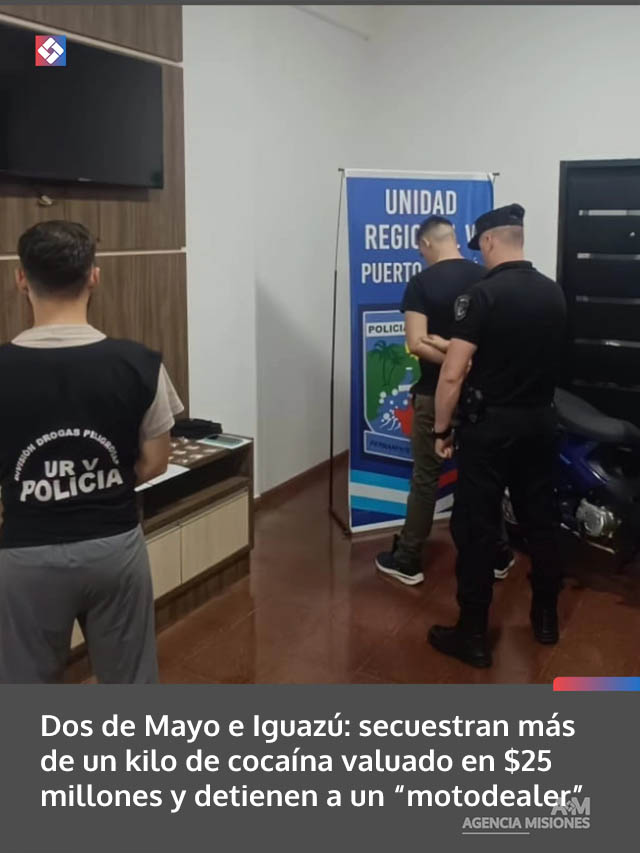 La entrada Dos de Mayo e Iguazú: secuestran más de un kilo de cocaína valuado en $25 millones y detienen a un “motodealer” se publicó primero en Agencia Misiones.uno.