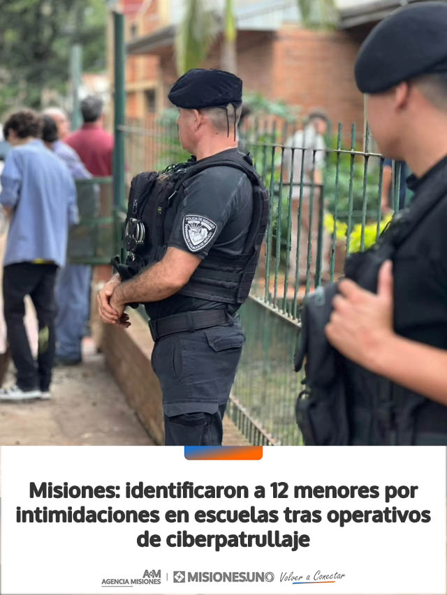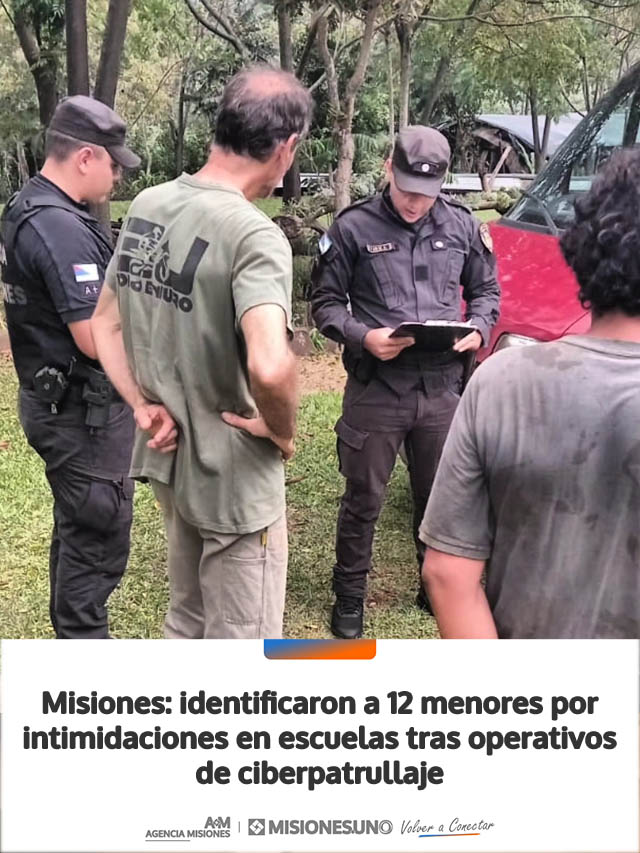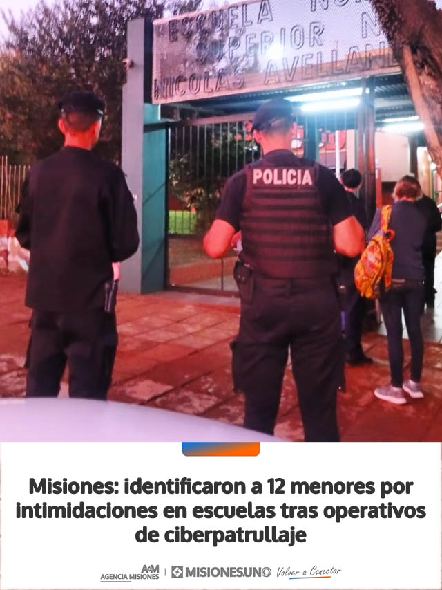 AGENCIA MISIONES.UNO | La Policía de Misiones identificó a 12 menores como presuntos autores de amenazas e intimidación pública en establecimientos educativos, en el marco de un abordaje integral que incluyó análisis digital y despliegues preventivos.