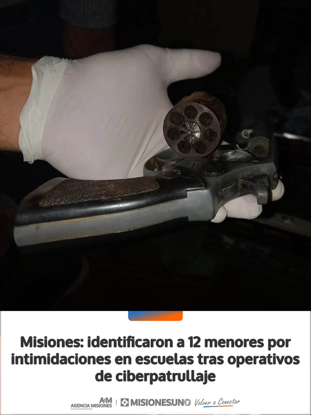 En San Vicente, un estudiante de 13 años fue individualizado luego de escribir un mensaje intimidatorio dentro de una institución educativa, mientras que en Dos de Mayo, un menor de 14 años fue detectado tras concurrir a un establecimiento con un arma de fuego. En este último caso, se secuestró un revólver calibre .22 que había sido entregado por su padre.