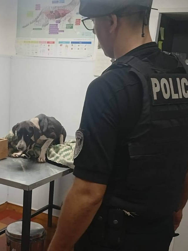 Ante la situación, una comisión de la División Comando Radioeléctrico, dependiente de la Unidad Regional II, acudió cerca de las 11:30 y constató que el animal adulto presentaba lesiones visibles en sus patas traseras, mientras permanecía junto a los cachorros.