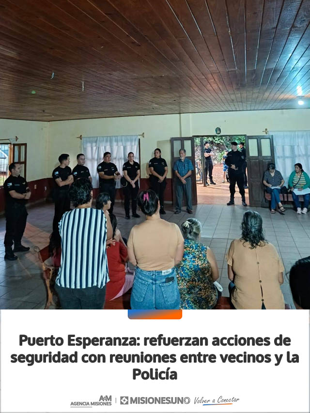 AGENCIA MISIONES.UNO | La Policía de Misiones continúa fortaleciendo el trabajo conjunto con la comunidad mediante encuentros con vecinos en distintos barrios de Puerto Esperanza, con el objetivo de mejorar la seguridad ciudadana.