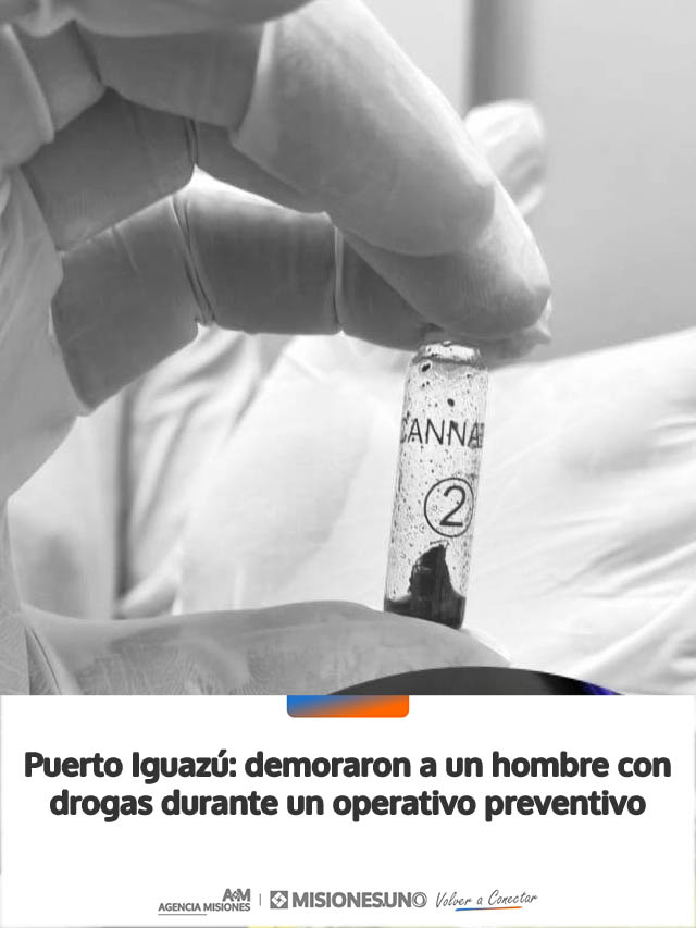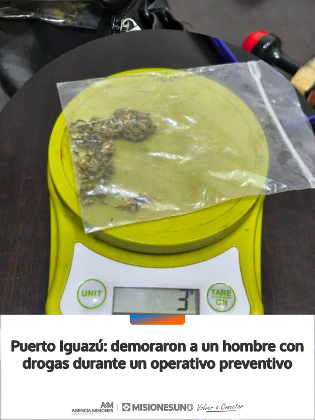 AGENCIA MISIONES.UNO | Un hombre de 36 años fue demorado en Puerto Iguazú tras ser sorprendido con sustancias estupefacientes durante un operativo preventivo realizado por la Policía de Misiones.