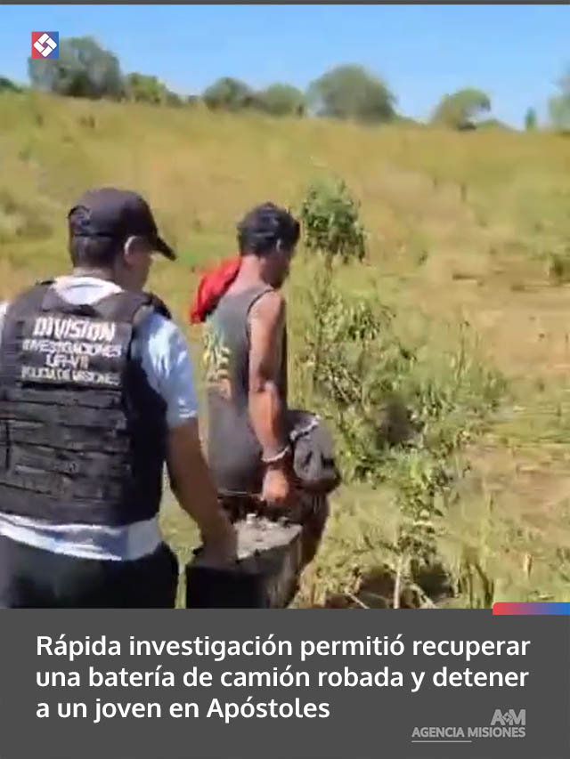 AGENCIA MISIONES.UNO | Un robo cometido durante la mañana del sábado en el barrio San Martín de Apóstoles fue esclarecido en pocas horas por la Policía, con la detención de un joven y la recuperación de una batería de camión sustraída.