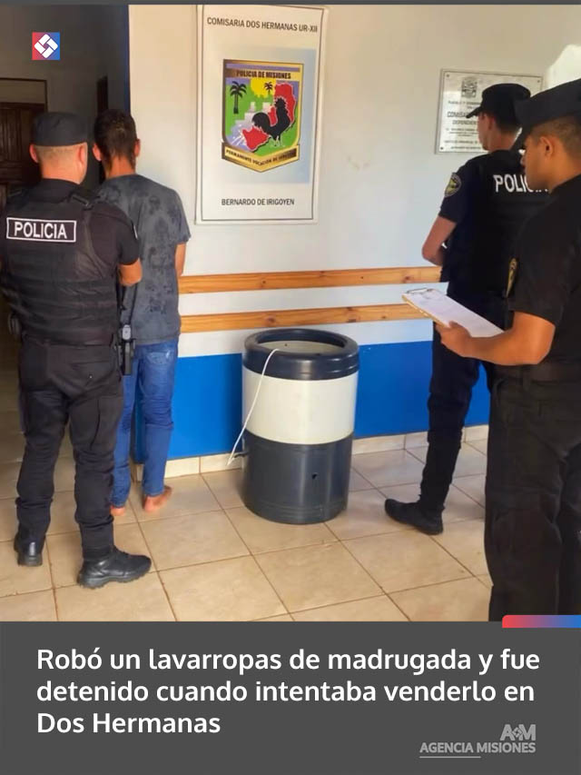 AGENCIA MISIONES.UNO | La Policía de Misiones esclareció un hecho delictivo ocurrido en la madrugada de este jueves en la localidad de Dos Hermanas, con la detención de un joven de 23 años y el secuestro de un lavarropas que había sido sustraído horas antes.