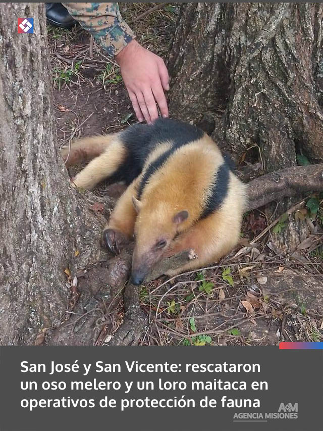 AGENCIA MISIONES.UNO | En dos procedimientos realizados este miércoles en las localidades de San José y San Vicente, efectivos de la Policía de Misiones rescataron un ejemplar de oso melero y un loro maitaca que se encontraban en situación de vulnerabilidad. Ambos animales fueron puestos a resguardo y derivados a organismos especializados para su recuperación.
