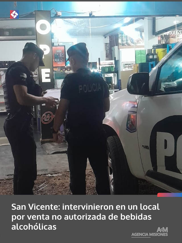 AGENCIA MISIONES.UNO | La Policía de Misiones realizó una intervención en un comercio de San Vicente, donde se constató la venta de bebidas alcohólicas sin la habilitación correspondiente, iniciándose una causa contravencional.