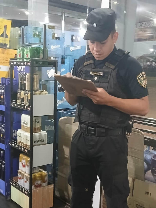 Durante la intervención, el personal policial verificó la comercialización de bebidas alcohólicas sin la autorización exigida por la normativa vigente, por lo que se labró el acta de constatación al responsable del establecimiento.