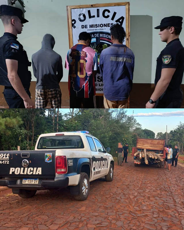 Tras el alerta, la policía realizó un operativo que permitió interceptar un camión Dodge 200 que transportaba la carga robada por un camino vecinal. Durante el procedimiento se detuvo a tres hombres de 18, 24 y 49 años y se secuestraron ocho rollos de madera y diversas herramientas utilizadas en el ilícito.